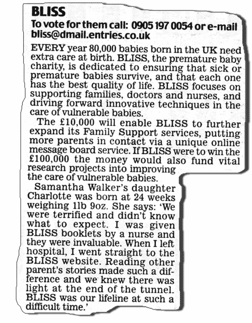 However, Charlotte proved to be an amazing fighter and finally returned home on Sunday 21st October 2007. 98 days after her birth. This day is celebrated in a special section, The Homecoming.